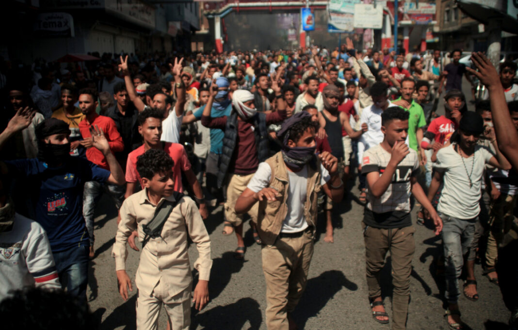 AL-MUKALLA: As Yemen’s prime minister touched down on Tuesday in the port city of Aden for the first time in months, thousands of Yemenis took to the streets of the southern city of Taiz and many other cities to protest against the country’s plunging currency and skyrocketing prices.
