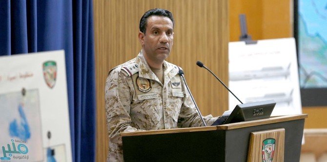 Spokesman Col. Turki Al-Maliki said: “Joint coalition forces managed to intercept and destroy a booby-trapped drone launched by the Iran-backed Houthi militia in a systematic and deliberate manner to target civilians and civilian objects in the southern region.”