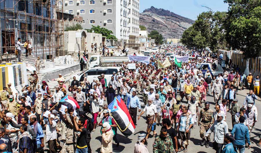 A group of demonstrators broke into Al-Maashiq Palace in Aden amid anger about the economic situation in the country. They dispersed peacefully a short time later.
